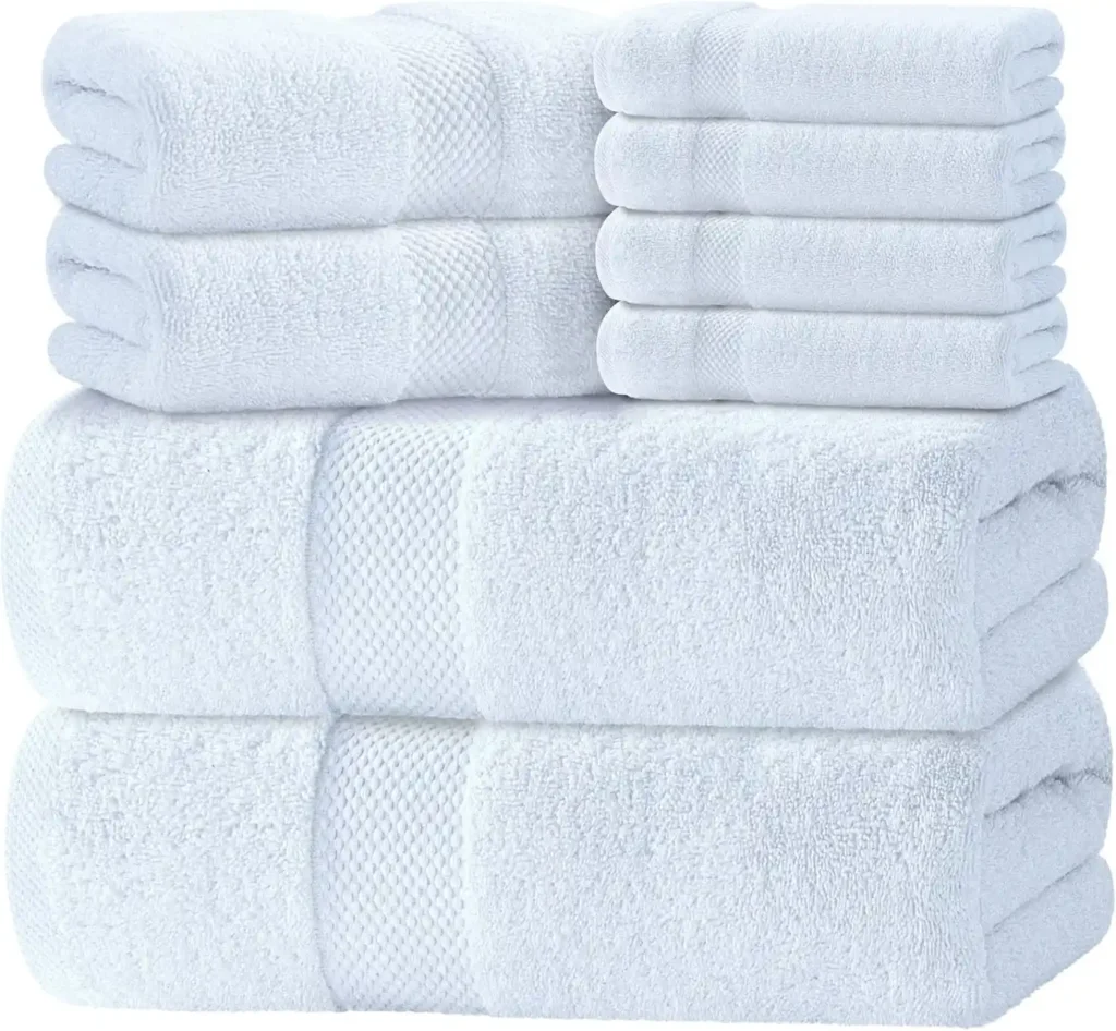 Few things make a bathroom feel fresher than thick, bright white towels. An 8-piece Turkish cotton set instantly gives that clean, hotel-style look while still feeling practical for everyday use. The 700 GSM weight means the towels feel plush and substantial, not thin or flimsy.