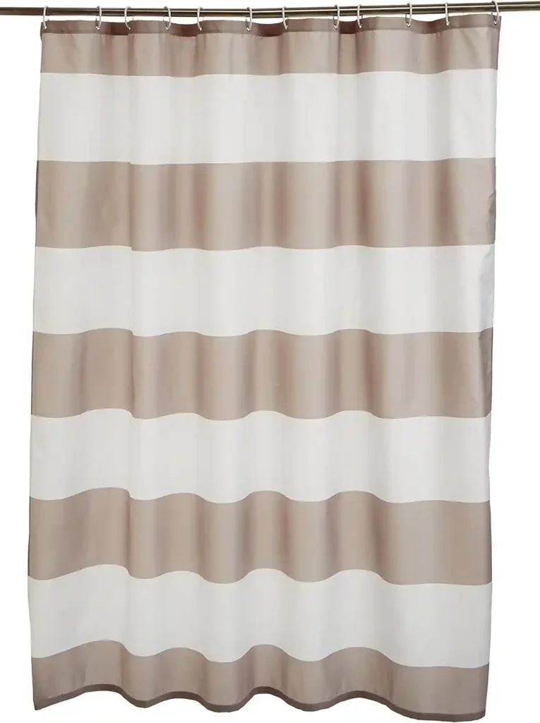 A new shower curtain can completely shift the mood of your bathroom. This light brown and beige fabric option keeps things soft and neutral, which works beautifully in modern, farmhouse, or minimalist spaces. The subtle tone warms up bright white bathrooms without feeling too dark.