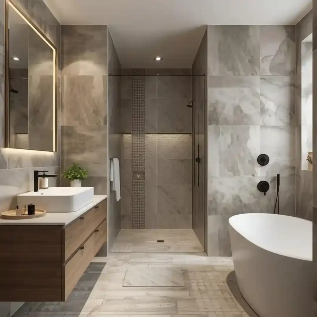 Porcelain and ceramic tiles are the most popular because they handle moisture well and are easy to clean. For a more premium feel, marble or stone-look tiles work beautifully, but they may need a bit more care. The best choice really depends on your style and how much maintenance you’re comfortable with.