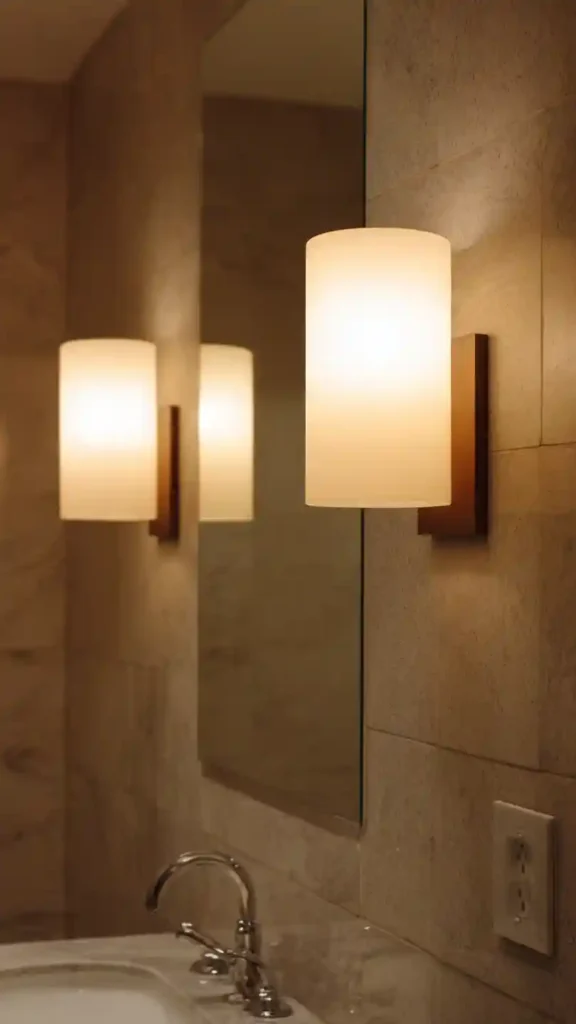 One of the most reliable bathroom lighting setups is placing a wall sconce on each side of the mirror. This arrangement spreads light evenly across the vanity and helps eliminate harsh shadows when getting ready.