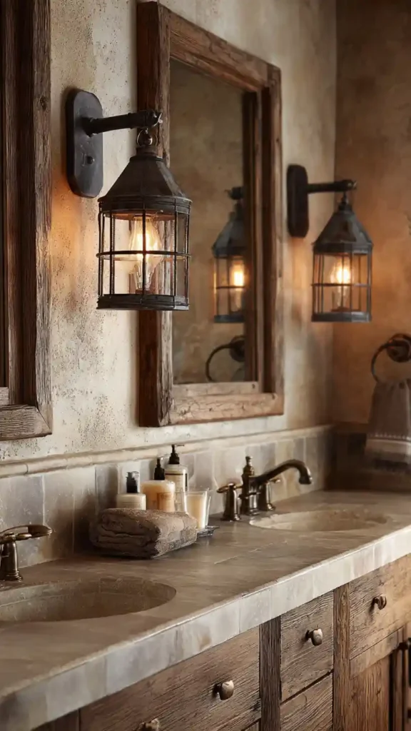 15. Rustic Lantern Wall Sconces for a Cozy Bathroom Style