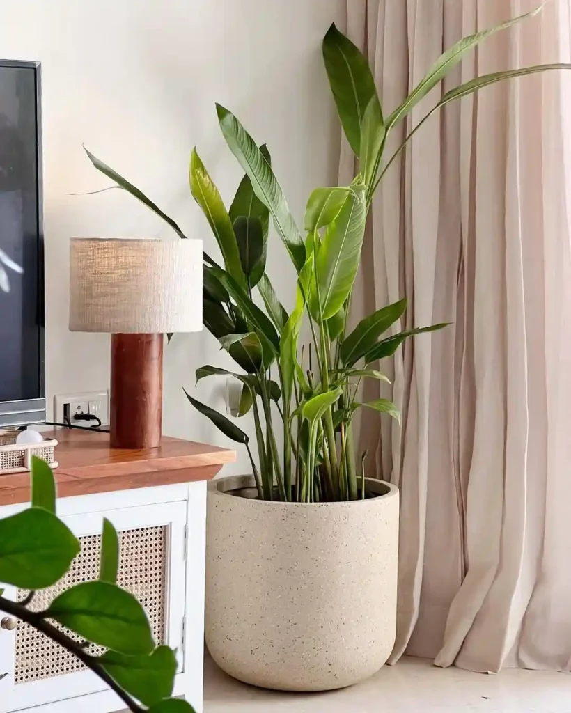 Sometimes one good piece is enough. This corner keeps things very simple a large plant, soft curtains, and a neutral setup but it still feels complete. The greenery adds height and movement, making the corner feel alive without adding clutter.