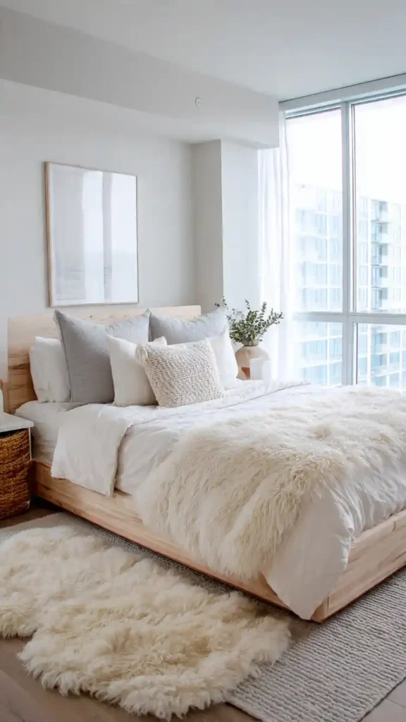 4. Scandinavian Cozy Bedroom with Sheepskin Accents