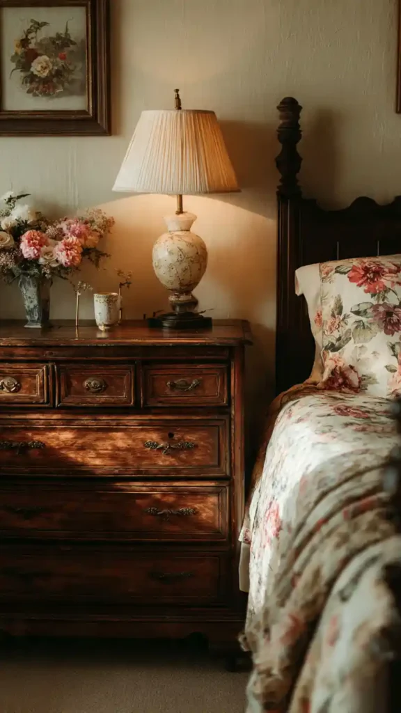 11. Vintage Cozy Bedroom with Antique Dresser