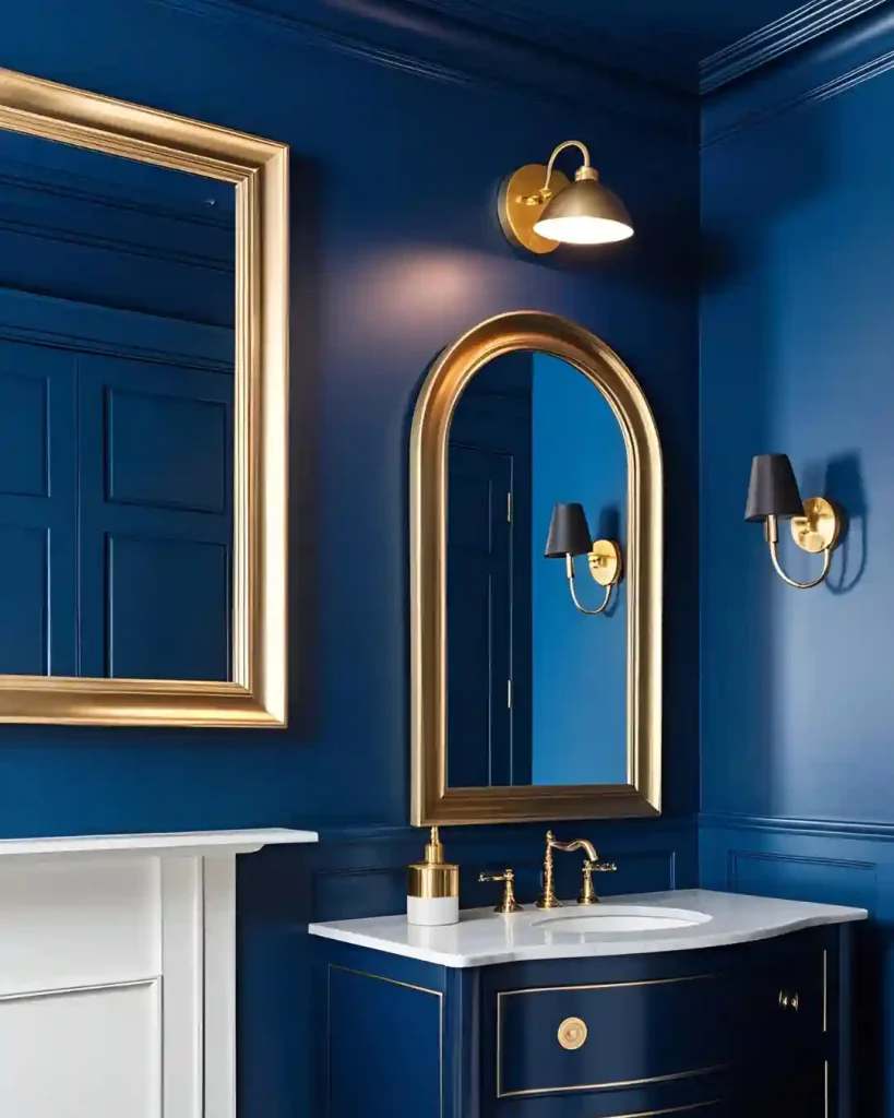 Quick tip: Navy blue paint with a matte finish hides wall imperfections better than glossy paint.