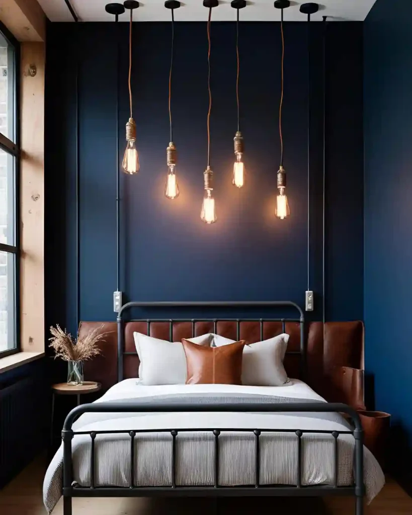 How to style it: Pair navy walls with metal light fixtures, simple furniture, and exposed elements (like brick or pipes if you have them). Keep the color palette simple.