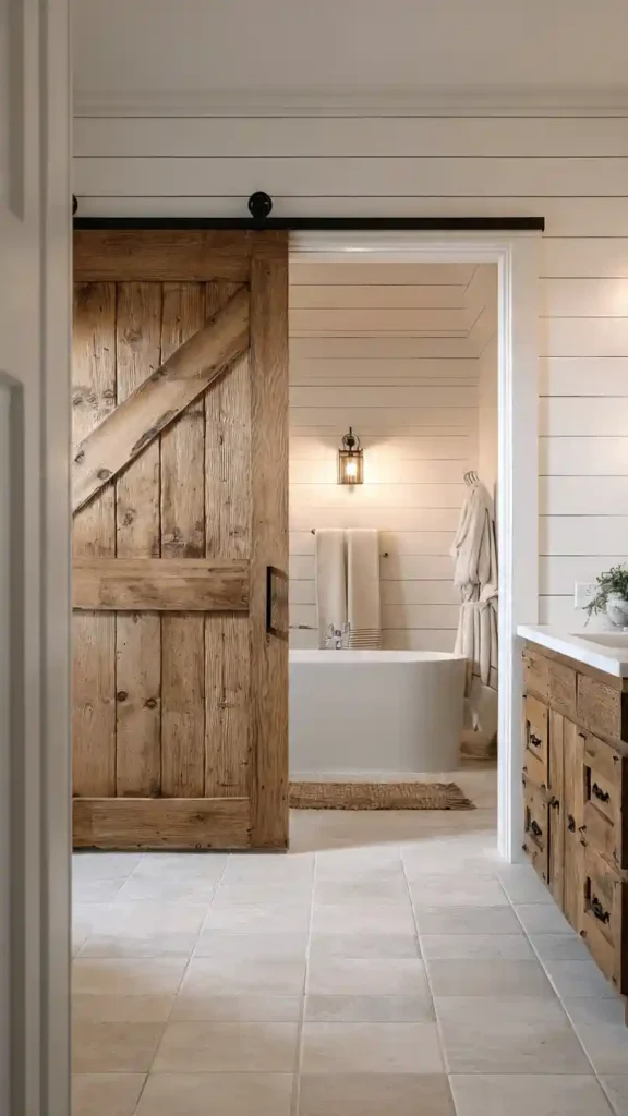 10. Farmhouse Bathroom with Sliding Barn Door