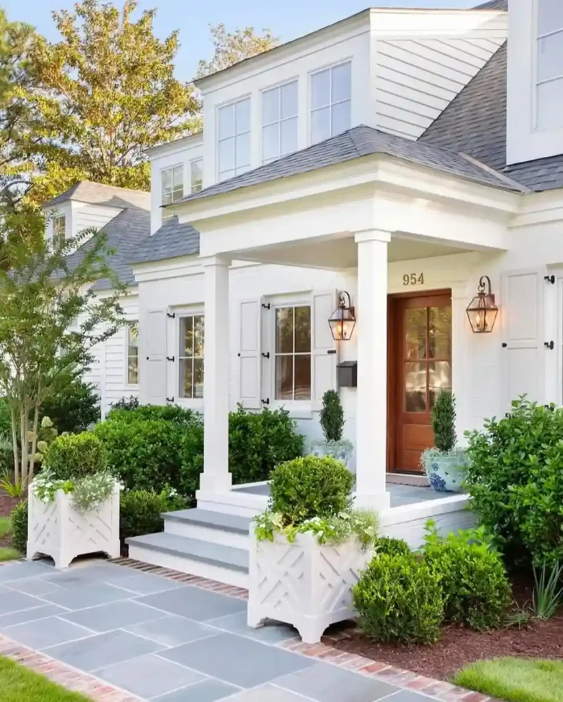 6. Porch Framing with Symmetrical Shrubs
