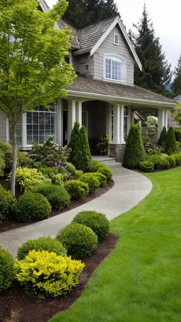 4. Clean Foundation Planting with Layered Shrubs