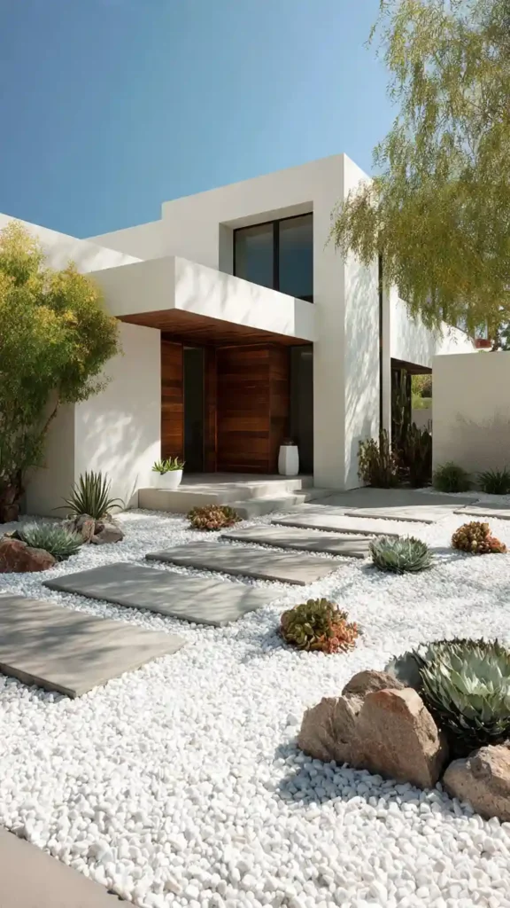 23. Modern White Gravel + Succulent Garden