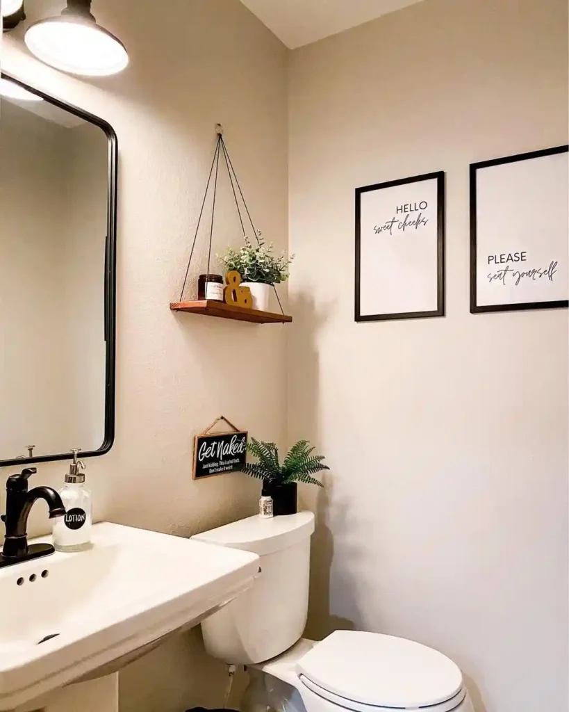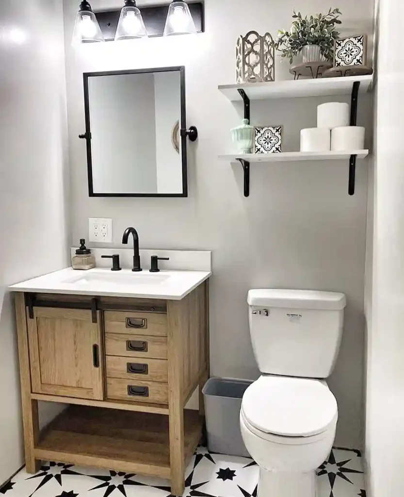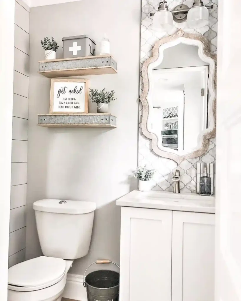 19. Farmhouse Shelf Decor Half Bathroom