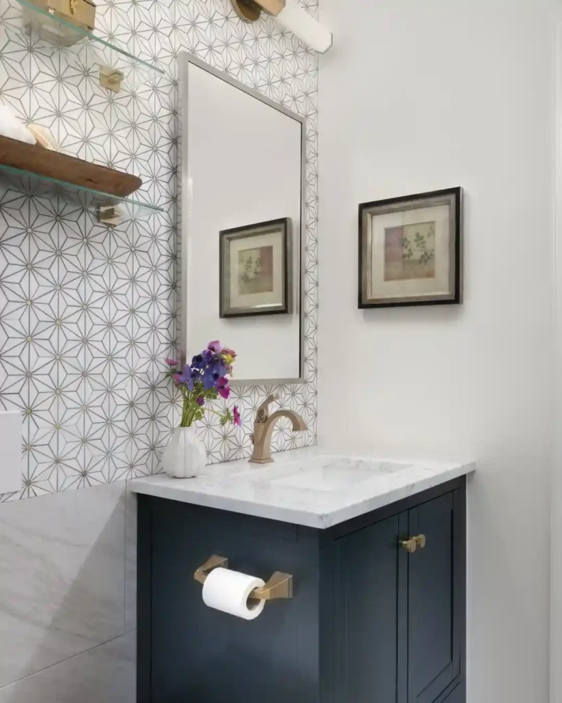 6. Geometric Tile Accent Half Bathroom