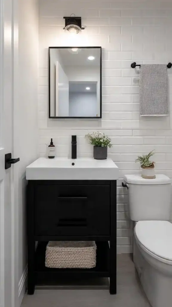 22. Modern Black and White Half Bathroom