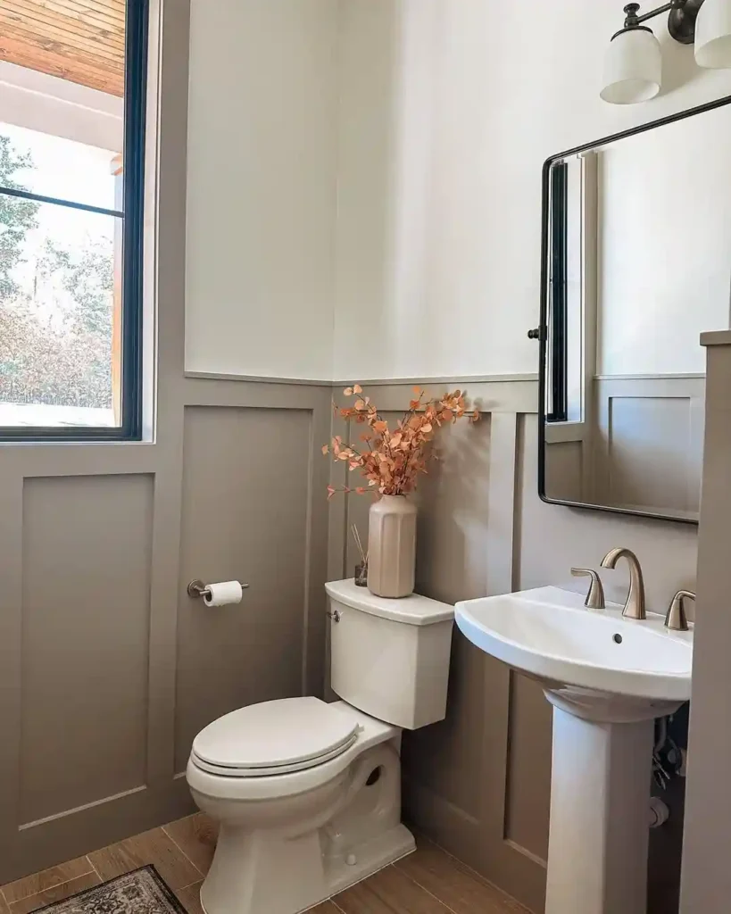 14. Warm Neutral Half Bathroom with Wall Paneling