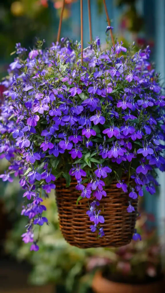 Style: Its soft cascading flowers create a light, airy look. Lobelia is perfect for seasonal porch displays and bright balcony railings.
