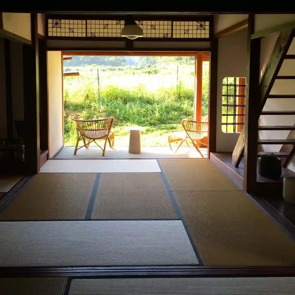 With traditional tatami mats underfoot and the view of a lush green garden outside, this room radiates peace. The rattan chairs and the open sliding doors make the space feel light and breezy, connecting the indoors to nature. It’s a perfect spot for morning tea or evening chats, soaked in soft sunlight and simplicity. The calmness in design invites stillness, echoing the soul of Japanese living.