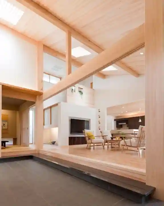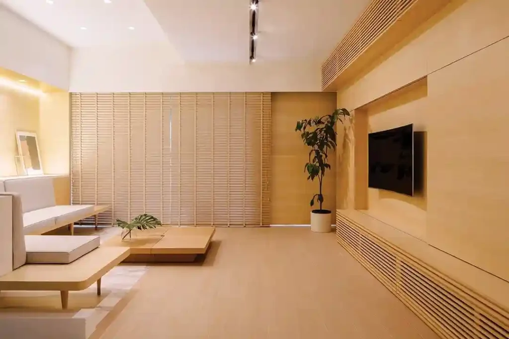 This living room beautifully blends Japanese tradition with modern minimalism. The open layout, soft natural light, and warm wood tones create a peaceful atmosphere. Elevated floors and clean lines keep the design simple yet refined. It’s a lovely balance between function and calm, where every element has space to breathe. The use of light timber and subtle décor makes this room perfect for unwinding or enjoying quiet conversations.