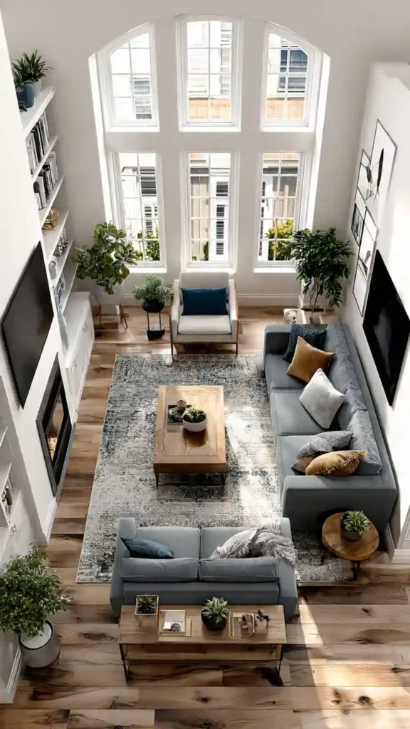 A good living room layout is all about how furniture is placed, not how much decor you add. The layouts below focus on clear seating zones, comfortable flow, and realistic room proportions. Each example shows a different way to arrange furniture so the space feels easy to live in and well balanced.