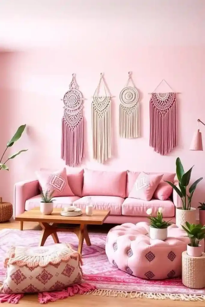 13.Soft Pink Macramé for a Cozy Boho Statement