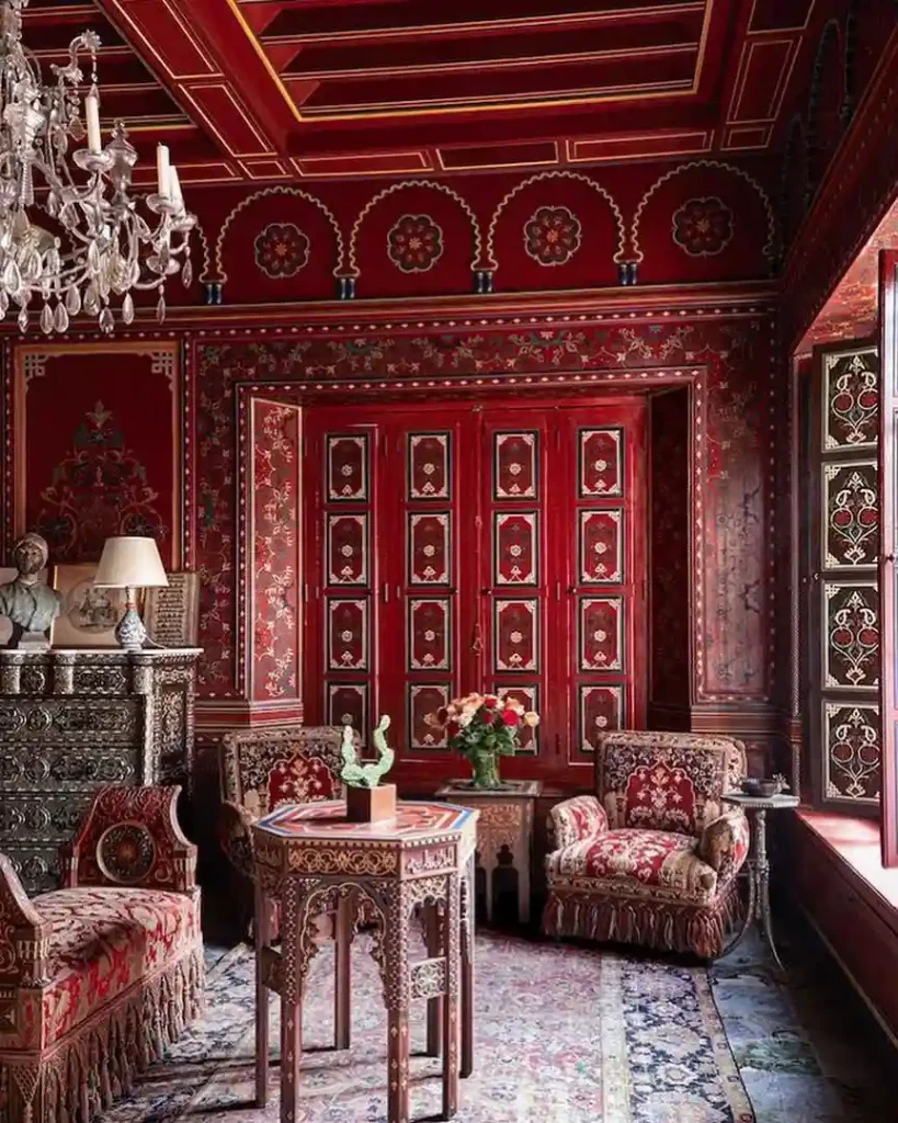 3. Deep Red Elegance in a Moroccan Sitting Room