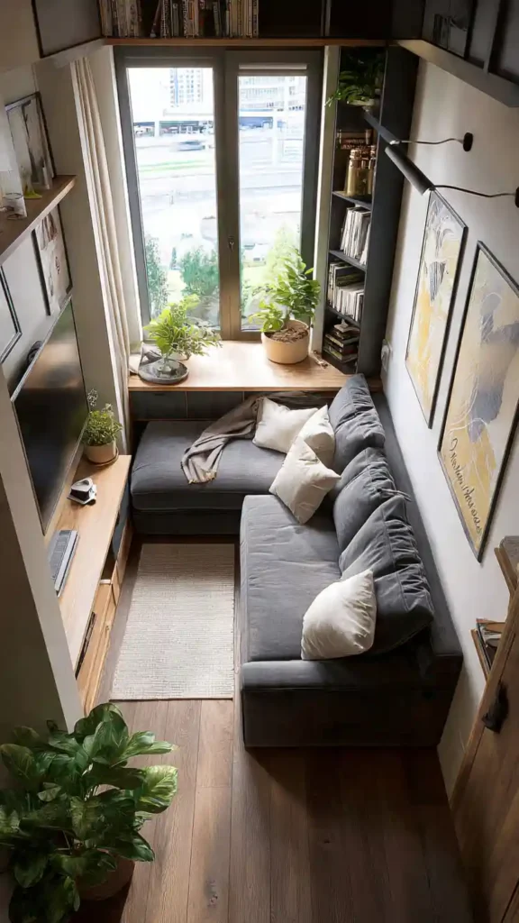 An L-shaped sofa can work in a narrow living room but only if it’s scaled properly. When placed neatly into a corner, it gives you more seating without blocking the walkway. The key is choosing a compact design.