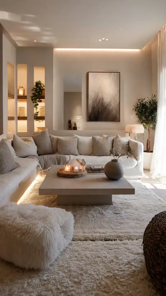 If you remove color, you need texture or the room will feel flat. This approach uses soft layers like cushions, rugs, and throws in similar tones to add depth without cluttering the space. It keeps everything calm but still interesting.