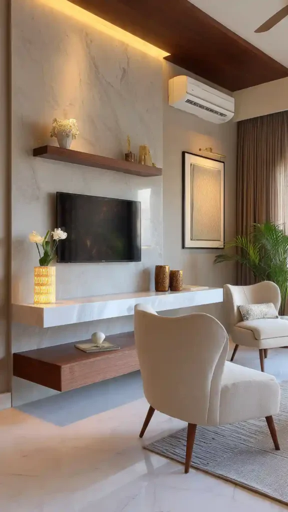 This one feels counterintuitive, but it works surprisingly well. Pulling your sofa slightly away from the wall creates breathing space, which actually makes the room feel wider. It also gives you a chance to add subtle styling behind the sofa, like a narrow console or soft lighting.