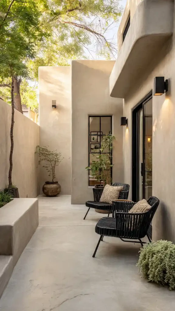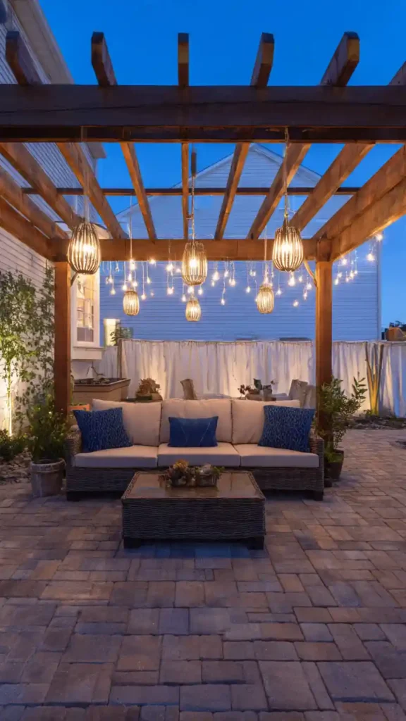 A pergola instantly adds structure to a backyard that has no grass. It creates a defined area where you can relax, without needing walls or heavy construction. Even a simple setup can make the space feel more complete and usable.