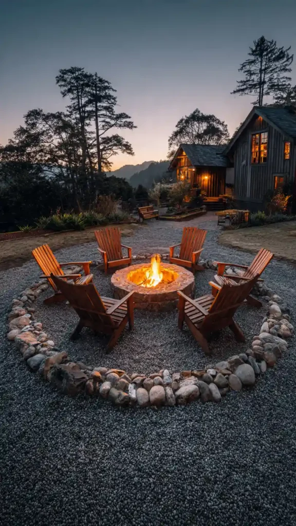 A fire pit area turns your backyard into a place people naturally gather. Using gravel as the base keeps it low maintenance while also making it safe and practical. It’s one of those setups that feels cozy without needing a lot of effort or decoration.