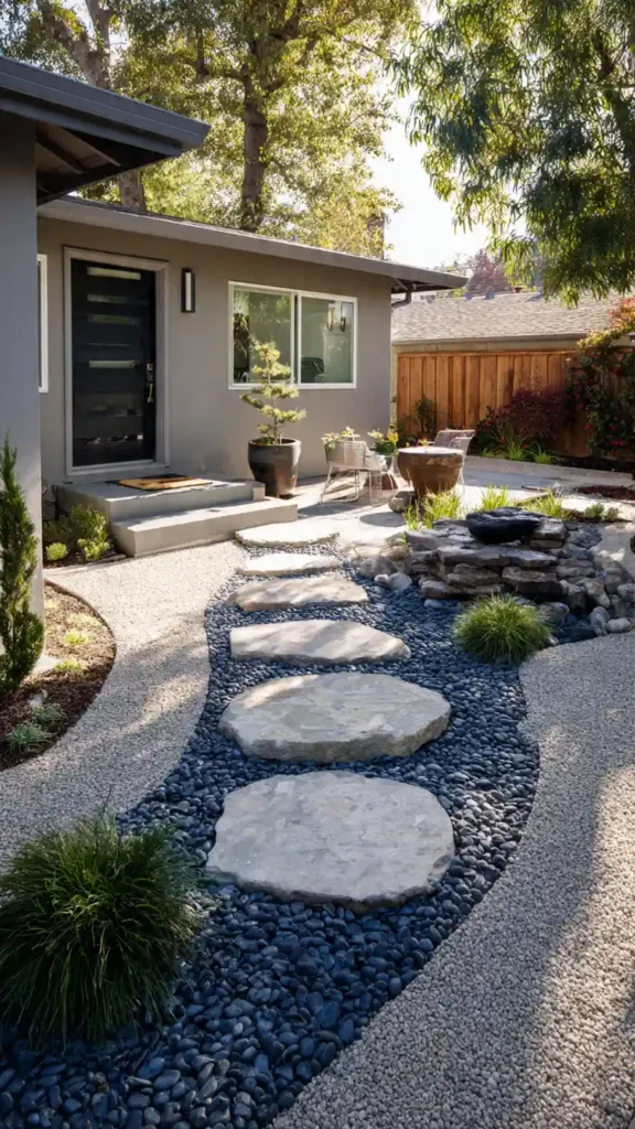 This setup is one of the easiest ways to make a backyard feel designed without spending too much. The mix of gravel and stepping stones breaks the flat look and naturally guides movement through the space. It feels casual but still intentional, which works well in both small and medium yards.