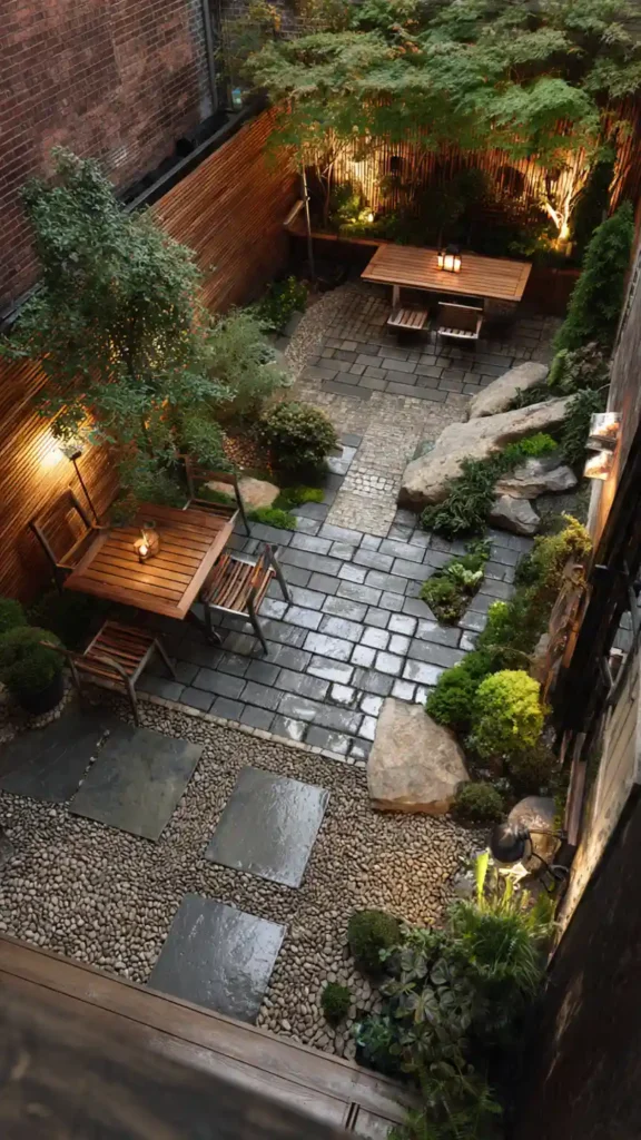 Focus on layers and zones. Use materials like pavers, gravel, or wood, then add seating, lighting, and a few plants. The key is not leaving the space empty—structure and layout matter more than greenery.