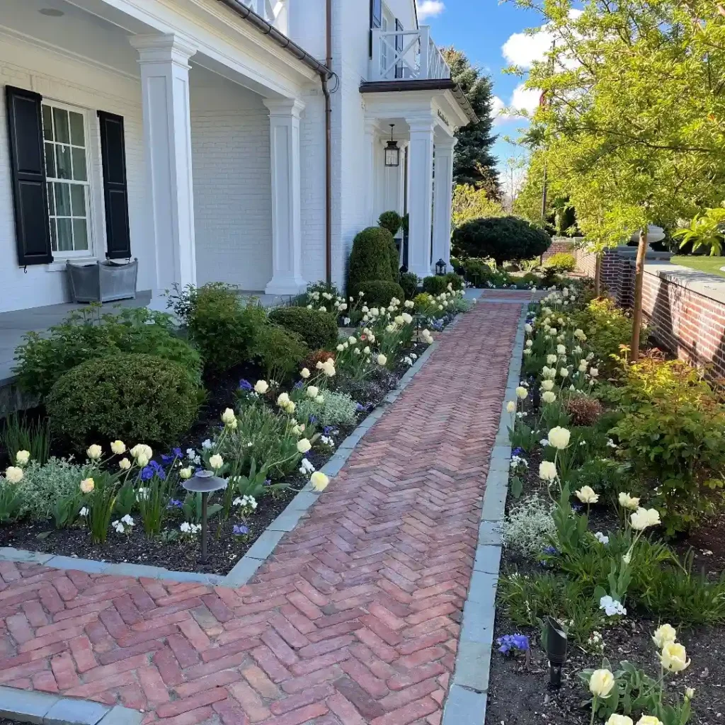 Classic Paver Walkway with Lush Garden Borders