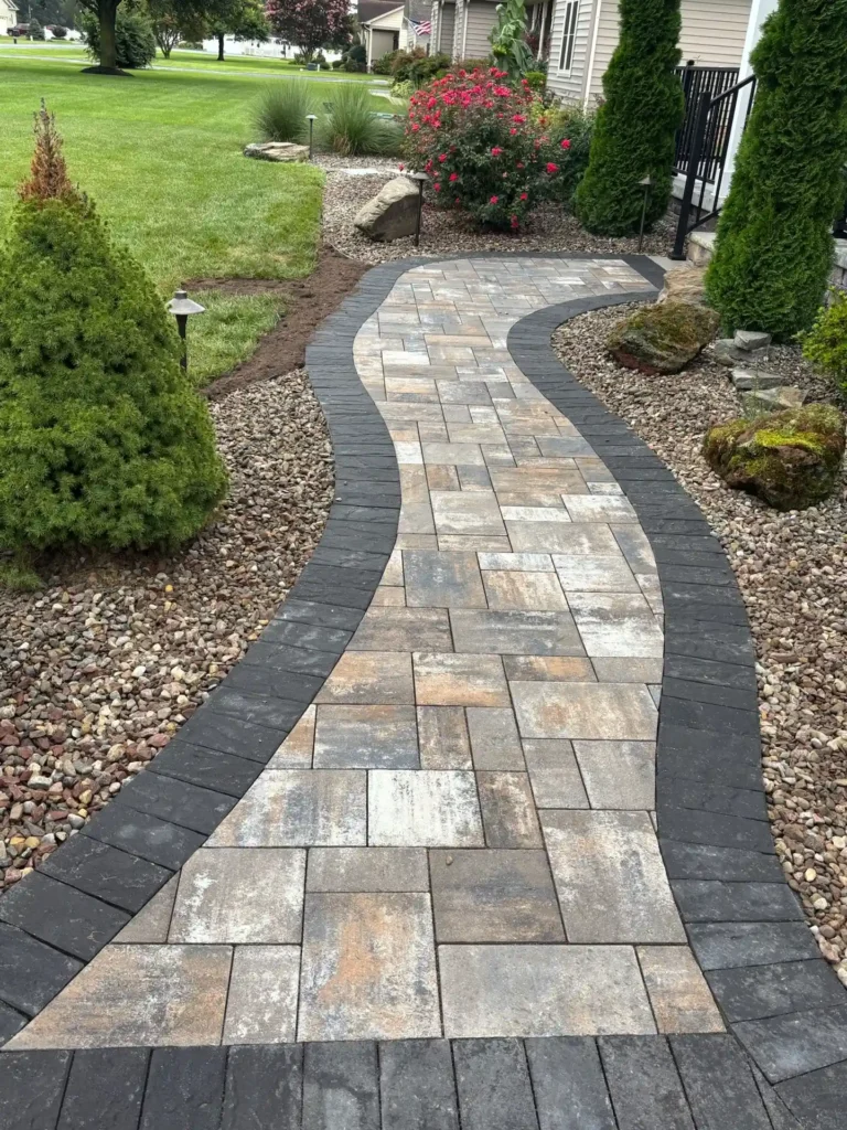 Curved Paver Walkway with Contrasting Border