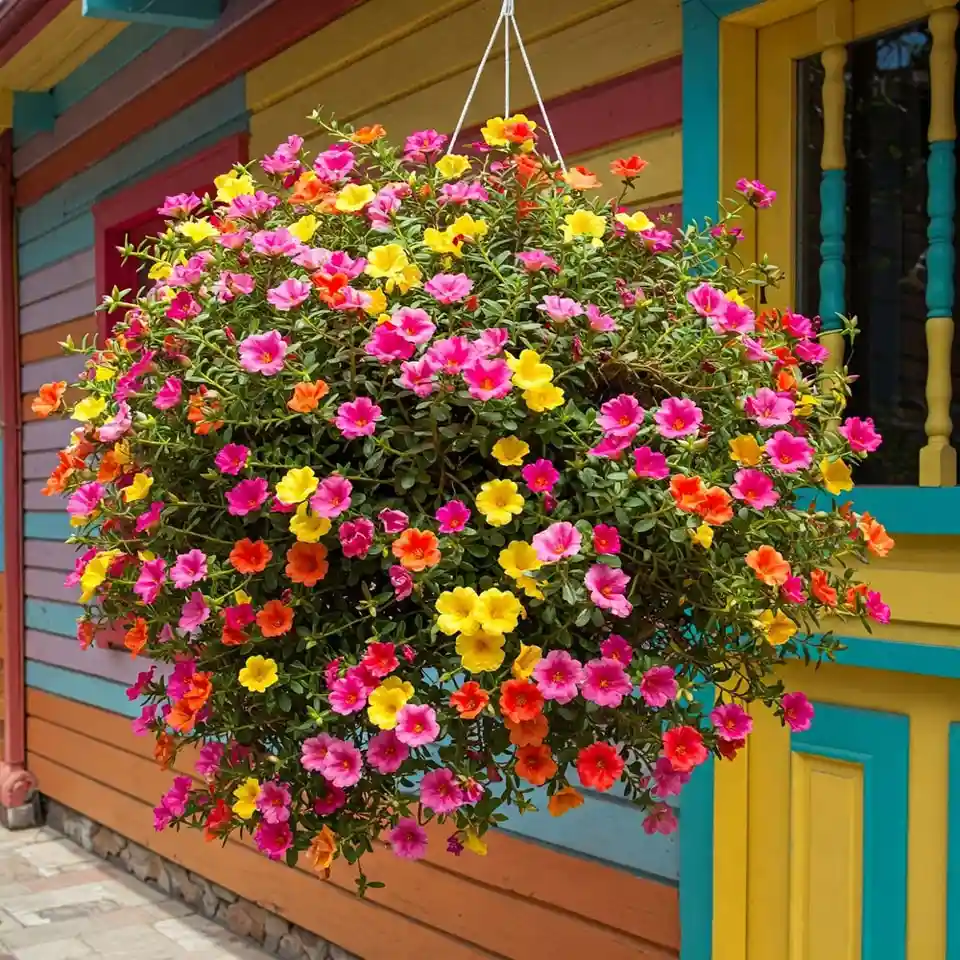 Portulaca is perfect if your space gets intense sunlight and you don’t want to worry about frequent watering. This low-growing plant produces small, rose-like blooms that open fully in bright sun and close in the evening. It thrives in hot, dry conditions where many plants struggle, making it ideal for terraces or rooftops. Its slightly wild, spreading look also softens hard edges in containers.
