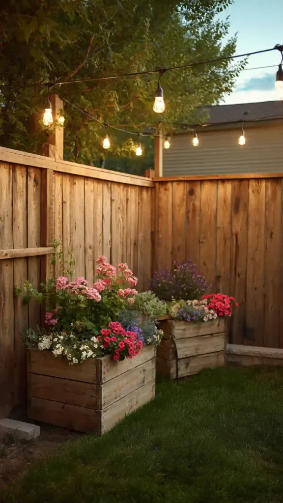 When floor space is limited, go vertical. A fence covered in wall-mounted planters adds greenery without crowding the patio. Mix trailing plants with compact flowering varieties to create depth and movement. Keeping the base area clear allows room for a slim bistro set or small bench. Vertical gardens also create a natural privacy screen, which makes small backyards feel more enclosed and peaceful.