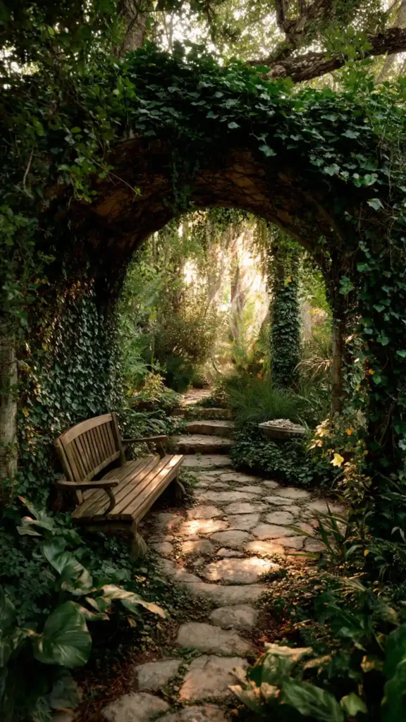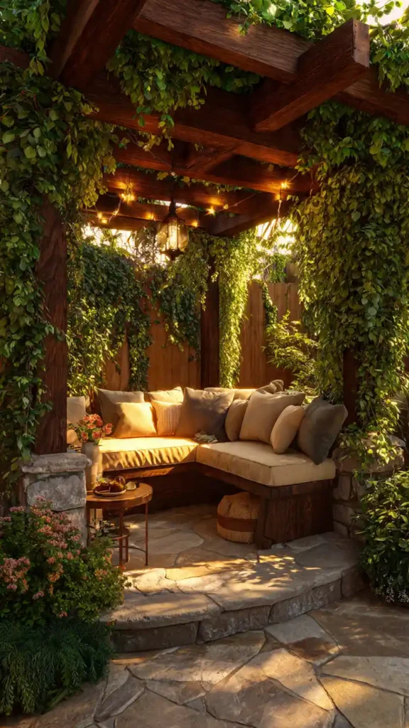 Creating a hidden retreat feeling is easier than it sounds. Add a small arch or trellis at the entry point and surround seating with taller plants for privacy. Let greenery grow slightly fuller rather than perfectly trimmed. The goal is to make the space feel tucked away and peaceful. Even a compact yard can feel like a private escape with smart layering.