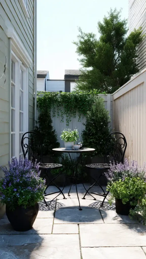 A compact bistro table turns even the smallest backyard into a usable dining space. Place it on a small patio area surrounded by potted herbs or flowers. This setup works especially well in townhouse gardens where space is narrow. Keeping furniture lightweight and foldable helps maintain flexibility. It’s simple, but it creates a reason to step outside daily.