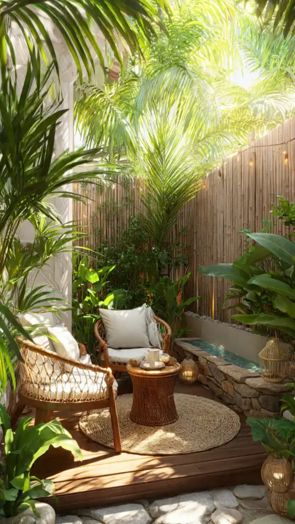7. Tropical Small Backyard Garden Retreat