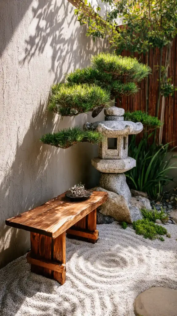 A simple Zen approach works well in tight spaces. Use raked gravel, smooth stones, and one or two sculptural plants. Keep colors neutral and uncluttered. A small wooden bench completes the look. The simplicity makes the backyard feel calm and visually larger.