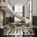 Soft lighting, glass wardrobes, and geometric wall paneling add sophistication. Keeping a monochrome or neutral palette with hints of metallic accents creates a high-end feel.