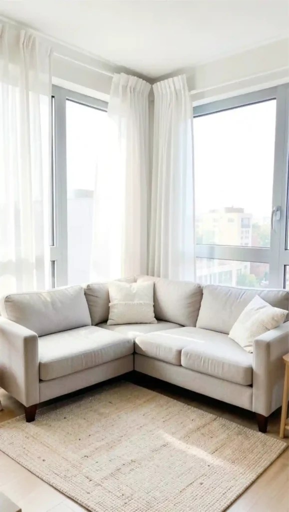 If your small living room has windows, let them shine. Use sheer curtains or light fabrics that let daylight flow in. Avoid blocking the view with bulky furniture. Natural light instantly makes the room feel larger and more inviting.