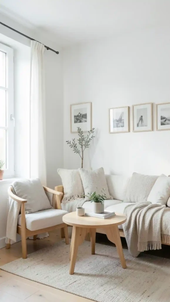 Scandinavian style is perfect for small living rooms because it focuses on light, function, and comfort. Think white walls, light wood, soft textiles, and simple shapes. Everything feels intentional and relaxed. This style keeps the room bright and cozy while avoiding visual clutter.