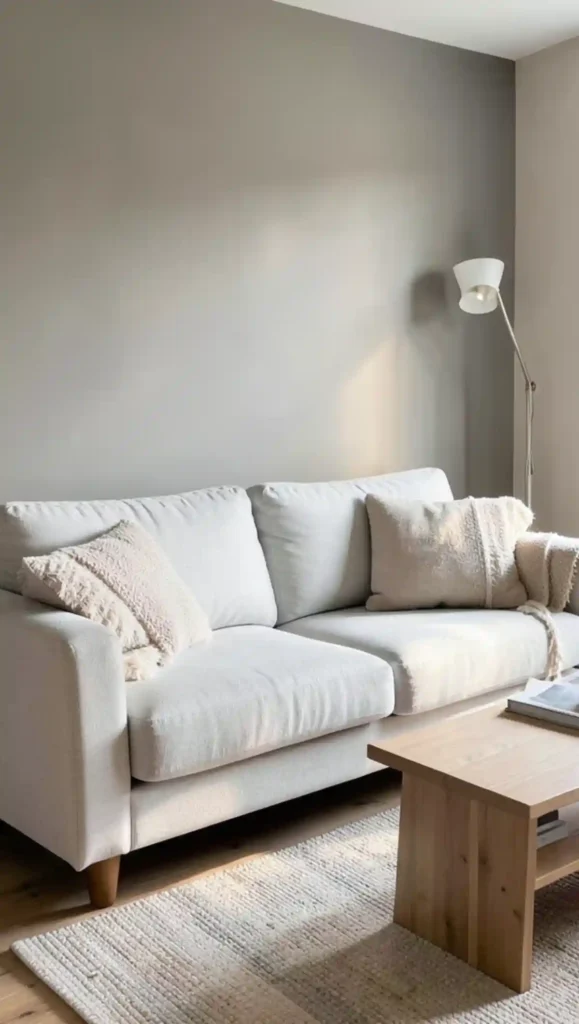 Slim furniture keeps pathways open and prevents the room from feeling cramped. Look for sofas with narrow arms and raised legs. These details make the layout feel lighter and more breathable.