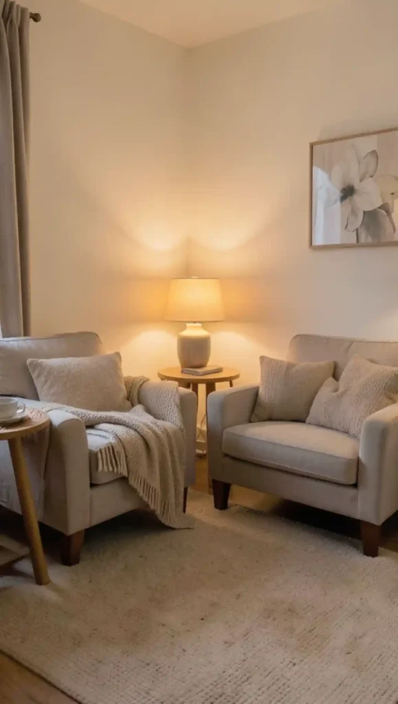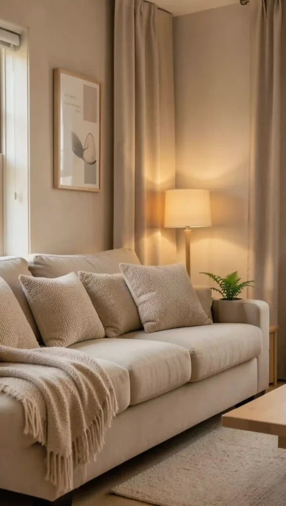 Warm beige tones create a cozy atmosphere without darkening the space. Layer different textures to keep the palette interesting. This approach feels inviting and works well in both modern and classic interiors.