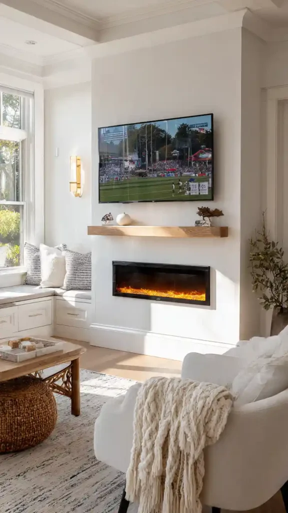 Combining a TV with a fireplace creates a strong focal point. It naturally draws attention and makes the space feel warm and inviting.