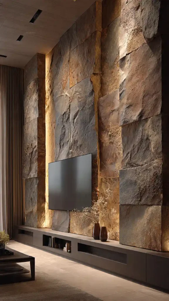 24. Textured Stone TV Wall