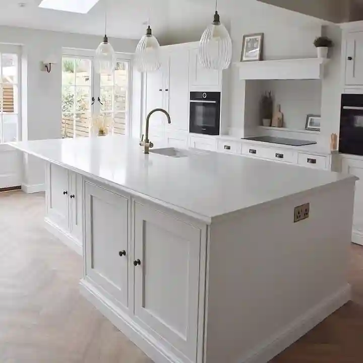 What countertop is best for a white kitchen island? Quartz is a popular pick for its durability and low maintenance, but marble and butcher block also work beautifully depending on the style.